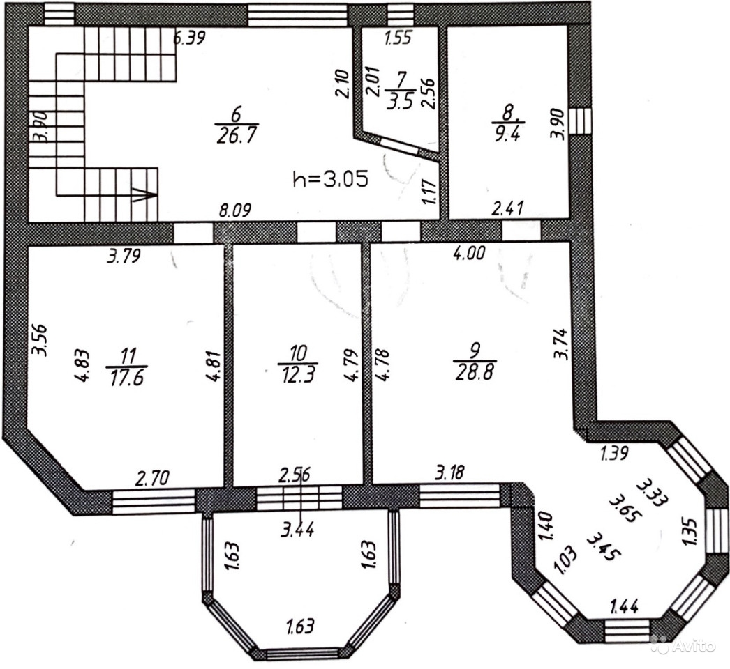 Высота потолков 3 метра.