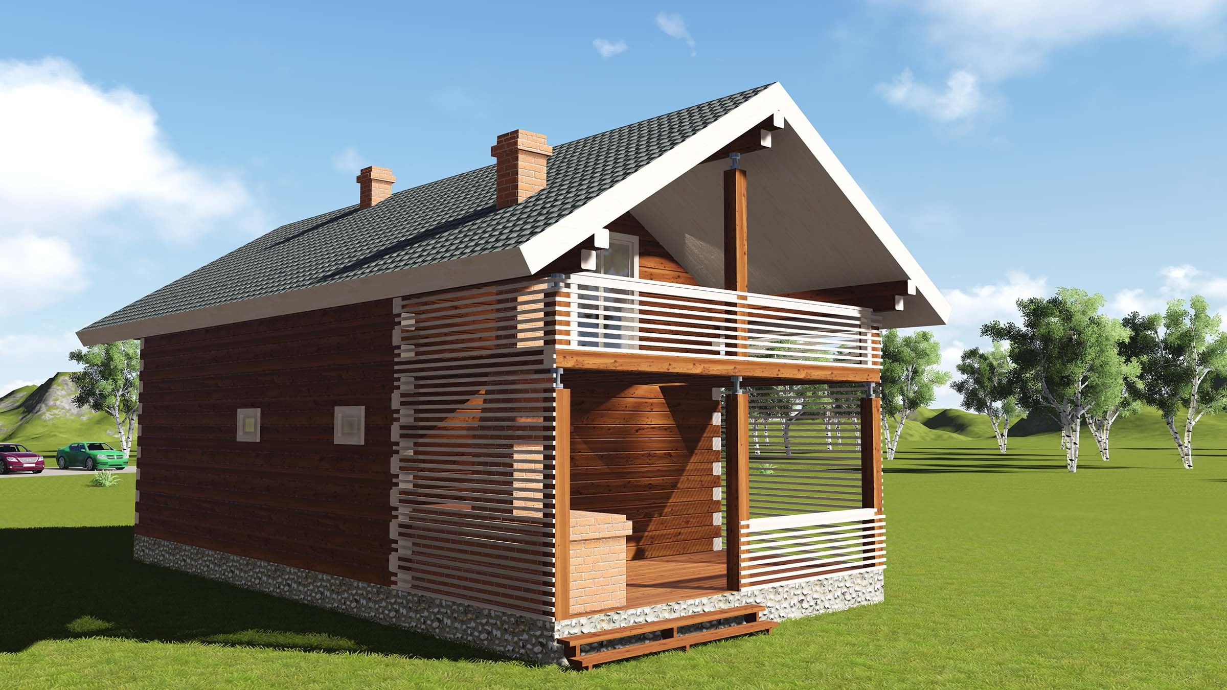 Двухэтажный дом 97м2 из бруса 180х180 — проект 195