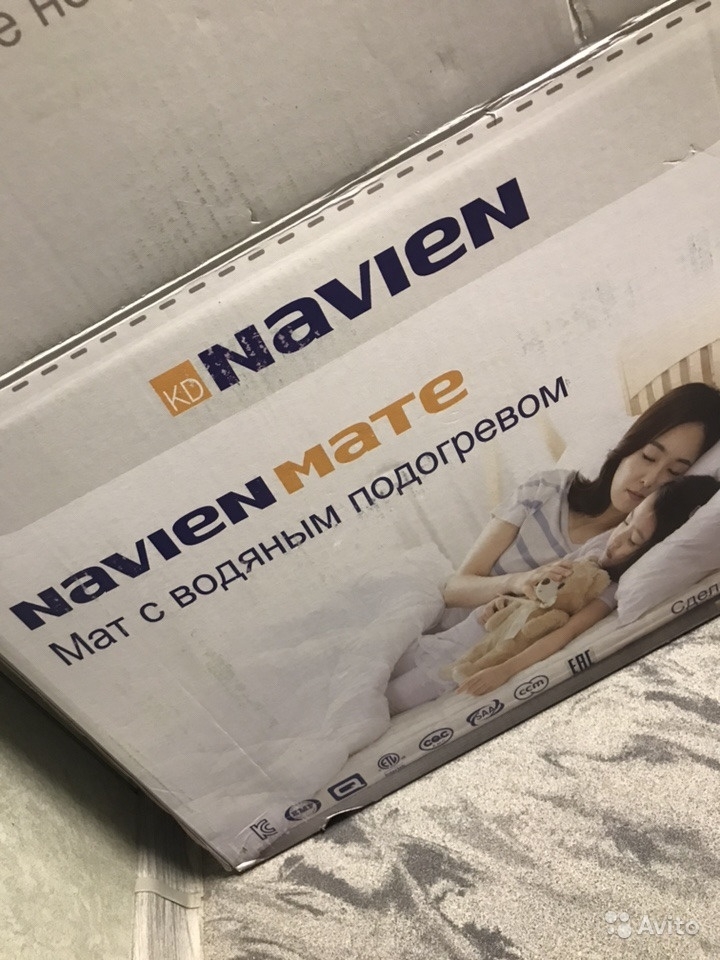 Водяной мат с электроподогревом Navien Queen 40DWRU двухместный, габариты разложенного мата: 1,5 м * 2 м, габариты нагревателя: 30*19*18 см.